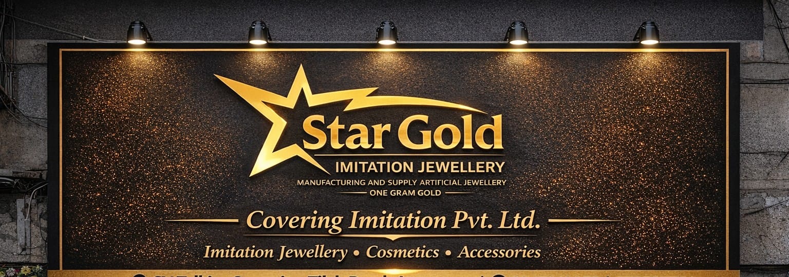 Star Gold Bazar offers a wide variety of over 1,500 designs in imitation jewellery, cosmetics, hair accessories, and bangles. We showcase all products with clear pricing and attractive discounts to ensure the best shopping experience for our customers in India.